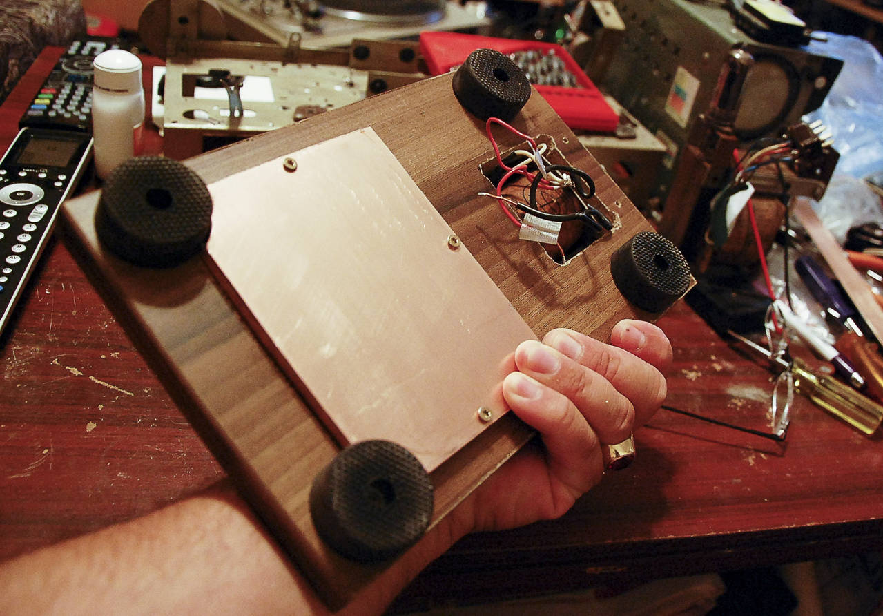 Also I made another version but with Russian 6N2P. Any1 who wants to do it must replace 20k resistors with 120k (or add in series with 20k one 100k resistor) and use same schematic. 6N2P is high amplification low noise tube, with same heating (4+5, 9 not in use for heating). So, everything the same, even heating current is bit lower than ECC85, but instead 20k use 120k resistors and … it prepare to hear something really good! Note that 120k anode resistor will set max current through tube to 2.5mA which is close to this tube maximum, so 120k is absolute must, lower R than that can destroy tube.